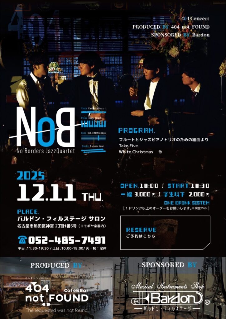 No Borders Jazz Quartet(ノーボーダーズ)ジャズライブを開催!<2025年12月11日>