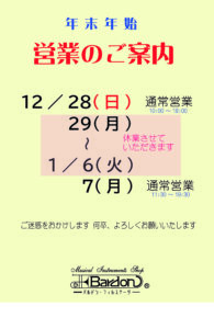年末年始営業のご案内 年末は12/28 (日)が最終営業日、年始は1/7(水)より営業いたします