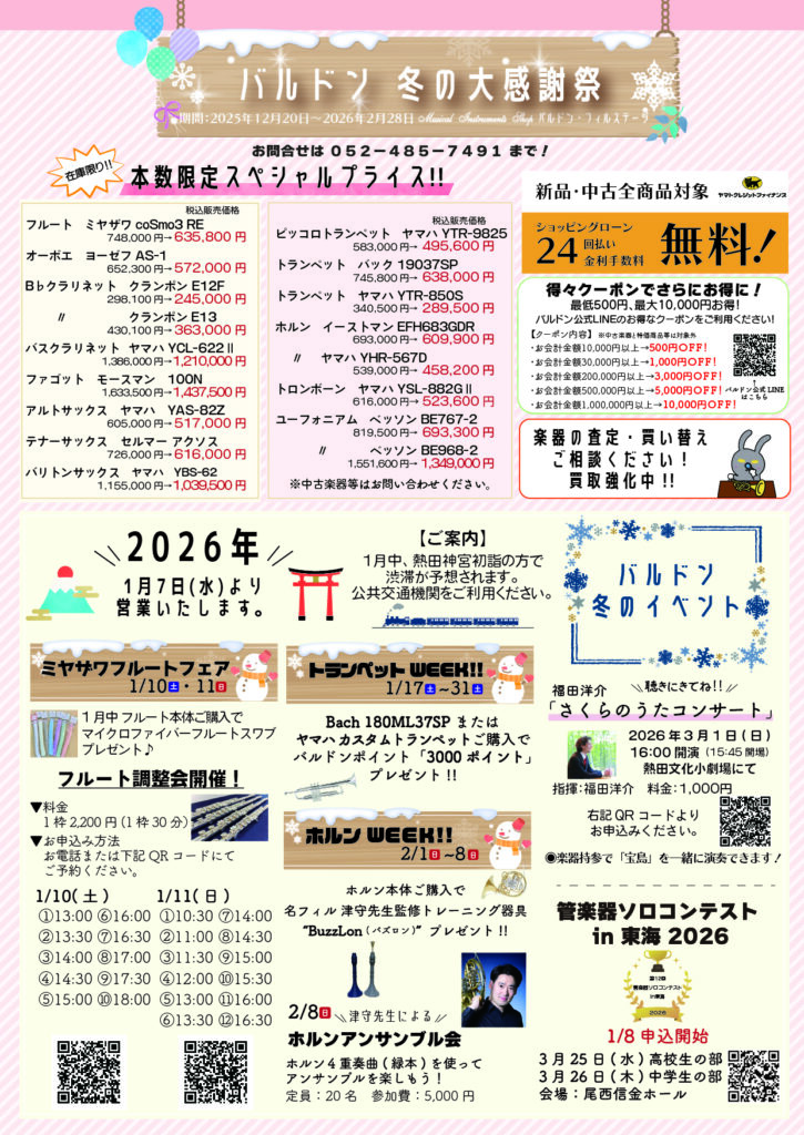 バルドン冬の大感謝祭開催!〈2025年12月20日〜2026年2月28日〉|管楽器専門店|バルドン・フィルステージ|ヨモギヤ楽器(株)